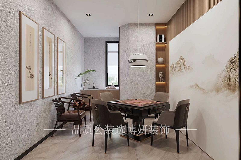 杭州棋牌室装修设计理念:棋牌室装修设计应体现现代简约与舒适并重的理念。在色彩选择上,运用温馨自然的色调,营造轻松愉悦的氛围。